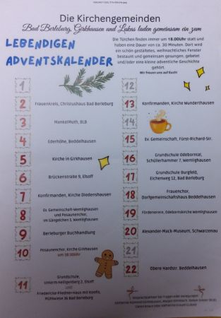 Beim Lebendigen Adventskalender öffnet heute die Ev. Gemeinschaft und der Posaunenchor ein schön gestaltetes, weihnachtliches Fenster. Es wird gemeinsam gesungen, gebetet und/oder eine kleine adventliche Geschichte vorgelesen.
